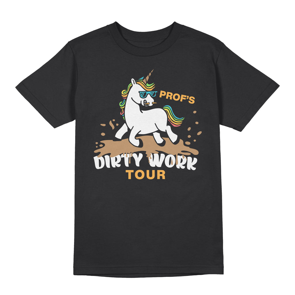 Both legs of Prof's Dirty Work Tour have come to a close! Whether you missed the merch booth because you were holding it down on the barricade, or you just want to re-live the fun of these AMAZING shows, we've got a just a few tour tees left for ya <3 These will not be reprinted, get them while you can!