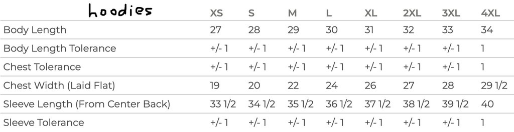 T-Shirts could be either Next Level 3600 or Bella Canvas 3001, possible size charts are below. Hoodies are ITC ss4500, size chart is also below.